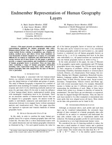 This paper presents an endmember estimation and representation approach for human geography data cubes. Human-related factors that can be mapped for a geographic region include factors relating to population, age, religion, education, medical access and others. Given these hundreds (or even thousands) of factors mapped over a region, it is extremely difficult for an analyst to summarize and understand the interactions between all of these factors. In this paper, a method to provide a compact representation and visualization of hundreds of human geography layers is presented. These are large data cubes containing a range of human geographic information including some represented using fuzzy values. Results on a human geography data cube compiled for the state of Missouri, USA is presented.