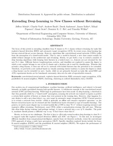 The focus of this article is extending classifiers from N classes to N+1 classes without retraining for tasks like explosive hazard detection (EHD) and automatic target recognition (ATR). In recent years, deep learning has become state-of-the-art across domains. However, algorithms like convolutional neural networks (CNNs) suffer from the assumption of a closed-world model. That is, once a model is learned, a new class cannot usually be added without changes in the architecture and retraining. Herein, we put forth a way to extend a number of deep learning algorithms while keeping their features in a locked state; i.e., features are not retrained for the new N+1 class. Different feature transformations, metrics, and classifiers are explored to assess the degree to which a new sample belongs to one of the N classes and a decision rule is used for classification. Whereas this extends a deep learner, it does not tell us if a network with locked features has the potential to be extended. Therefore, we put forth a new method based on visually assessing cluster tendency to assess the degree to which a deep learner can be extended (or not). Lastly, while we are primarily focused on tasks like aerial EHD and ATR, experiments herein are for benchmark community data sets for sake of reproducible research.